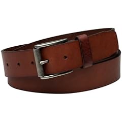 100% leather with pewter hardware buckle. 38mm wide. Perfect belt accessory for men's jeans. Click here for belt sizing guide.I have to say that I really like this belt. While considering the purchase, I thought that it might be too wide for some of my slacks, but it wasn't. The leather is softer than I've seen in belts I've owned in the past, but the craftsmanship is good, and I think it will last longer than those belts. I am very happy with my purchase.